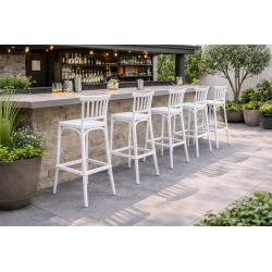 Designer bar stool, UV treatment, white injected polypropylene. For outdoor and indoor use. We can offer similar chair. Available in other colors.