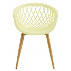 -Metal frame imitation of wood, seat and back in pastel yellow injected polypropylene
