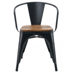 Designer armchair, steel structure, painted in black with wooden seat. For indoor or outdoor use. Available in other colors. We can offer similar table, chair and bar stool.