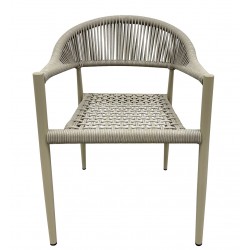 Designer armchair, aluminum, back and seat in rope beige. For outdoor and indoor use.