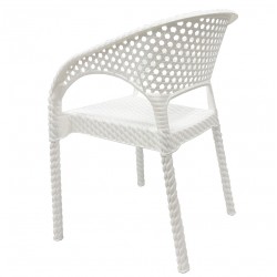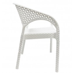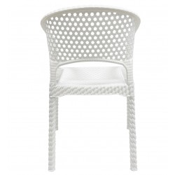 Stackable armchair, imitation of rattan, white polypropylene. For outdoor and indoor use. Available in other colors.