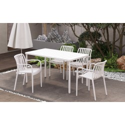 Stackable armchair, white polypropylene. For outdoor and indoor use. Available in other colors. We can offer similar tables