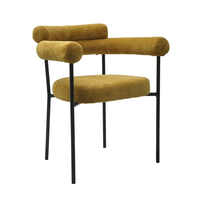 Modern chair, black metal, upholstered yellow bouclé fabric. Available in other colors