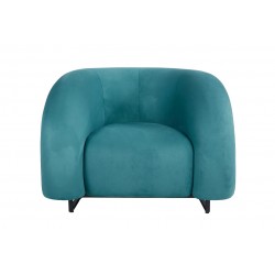Designer armchair, upholstered in turquoise velvet fabric. Available in other colors.