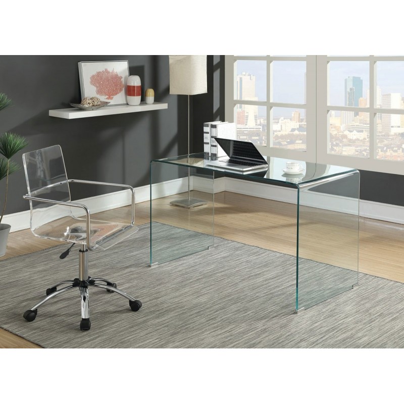 Designer table made entirely of tempered glass with a transparent finish. 12 mm of thickness.