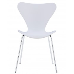 Modern stackable chair, chromed, seat and back in white polypropylene.