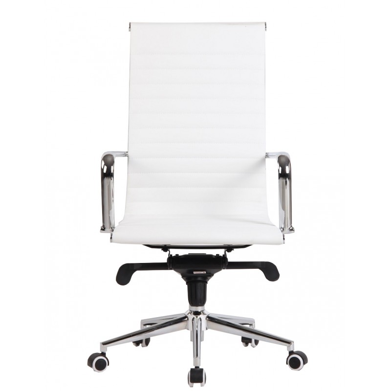 Executive office chair, design, high, gas, advanced multunction mechanism, upholstered in white synthetic leather. Available in other colors. We can offer similar swivel middle back and visitor's office chair