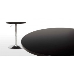 Height adjustable table, design, multipurpose furniture, round, 70 cms in diameter, chromed, black soft table top. Allows you to adjust the height as a table with standard height and as a high table for bar stools.