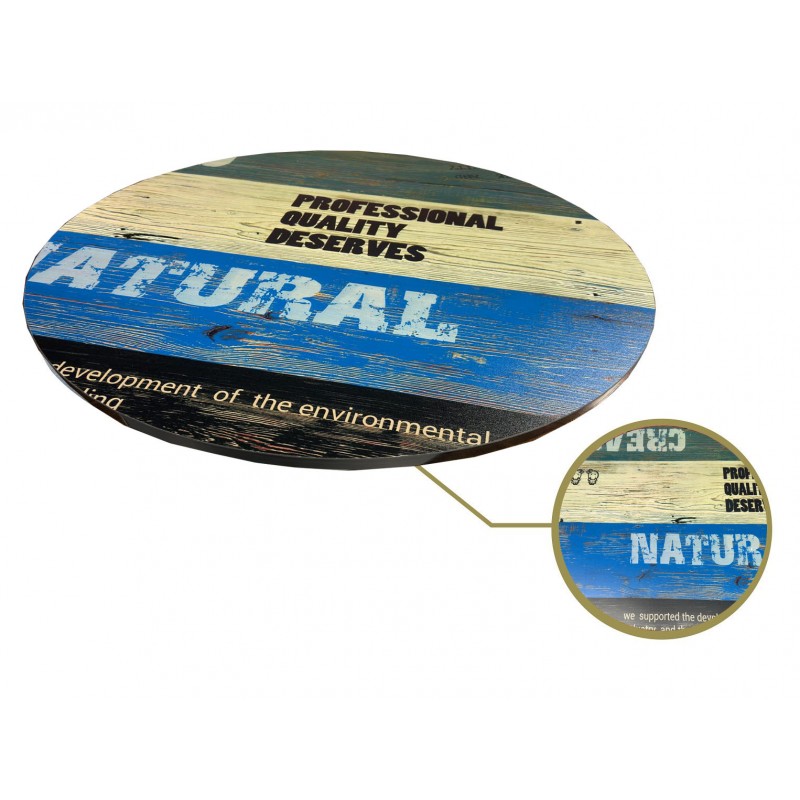 Vintage table top, 25 mm of thickness. Round format 70 cms in diameter. PVC edging