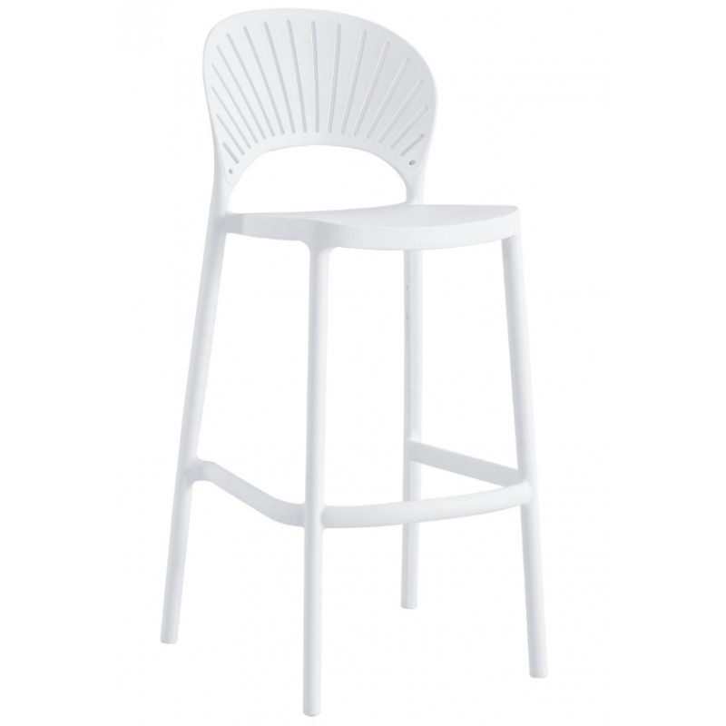 Taburete de diseño, apilable, polipropileno inyectado de color blanco. Uso en exterior e interior. Silla a juego. Otros colores disponibles.