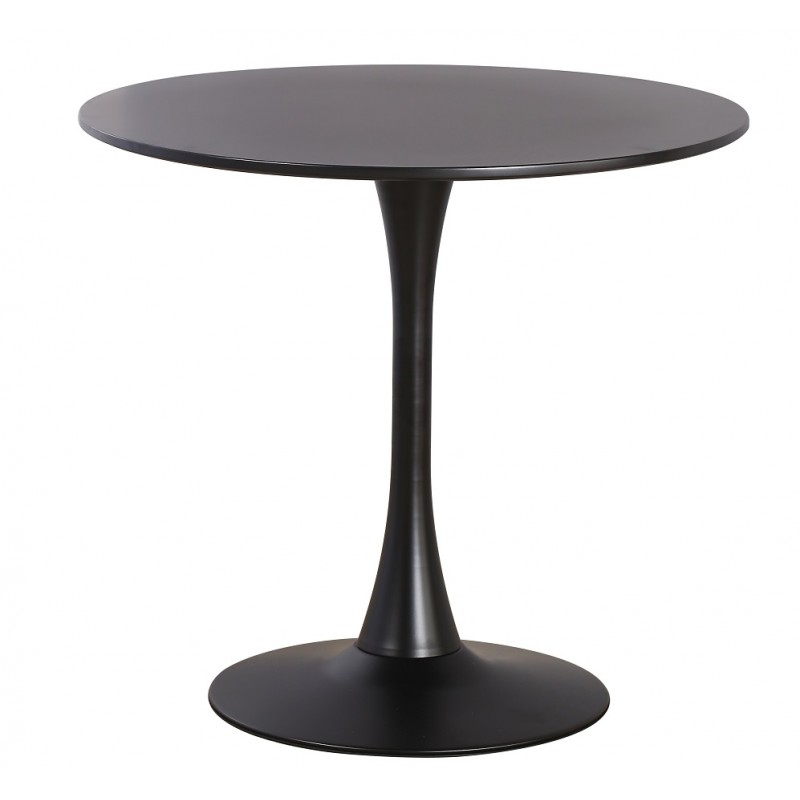 Mesa de diseño, base metálica, tapa lacada negra, 90 cms de diámetro