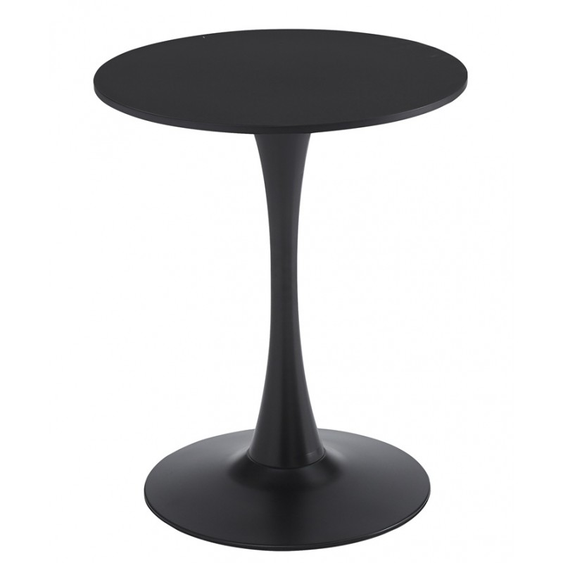 Mesa de diseño, base metálica, tapa lacada negra, 60 cms de diámetro
