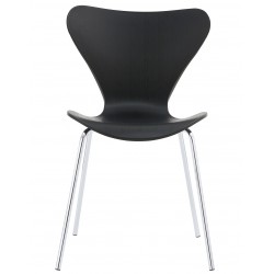 Silla moderna, apilable, cromada, carcasa de polipropileno negro.