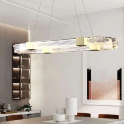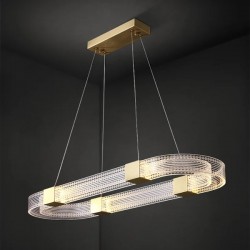 Lámpara de colgar, diseño, metal dorado, acrílica, led.
