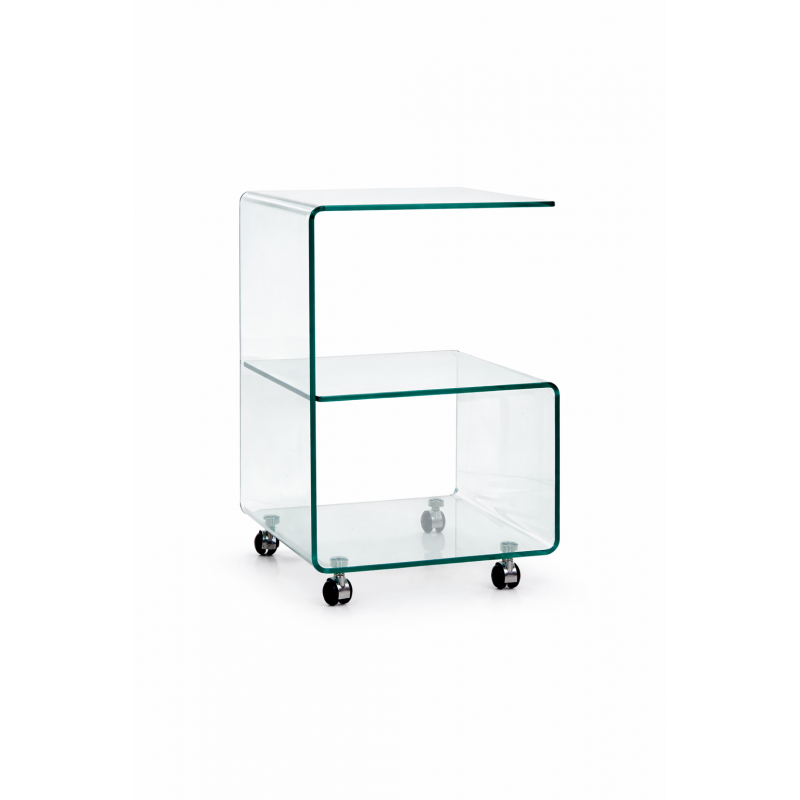 Mesa auxiliar de diseño, ruedas, cristal curvado. Altura 60 cms