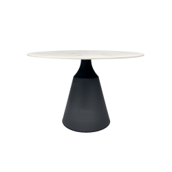 Mesa de diseño, armazón metálico con acabado negro, tapa de cerámica