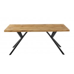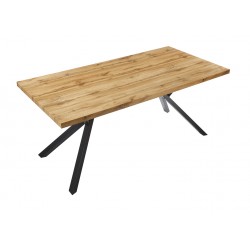 Mesa de diseño, armazón metálico con acabado negro, tapa de DM madera bilaminada