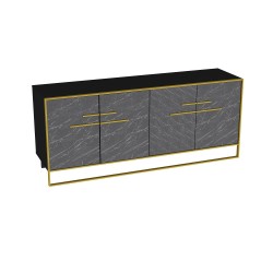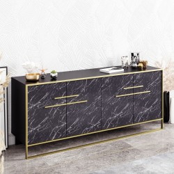 -Acabado bilaminado de color blanco con 4 puertas frontales en mármol negro con detalles en tonos dorados