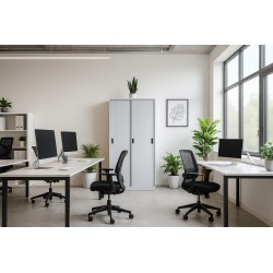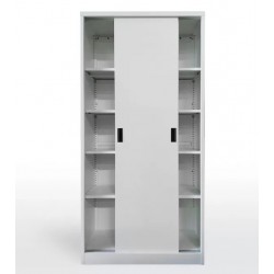 Armario metálico, 2 puertas correderas, 4 estantes regulables, cerradura, acabado de color gris claro, ral 7035.