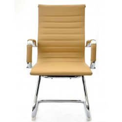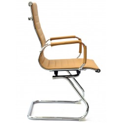 Sillón fijo de patín, diseño, cromado, tapizado similpiel marrón claro. Otros colores disponibles