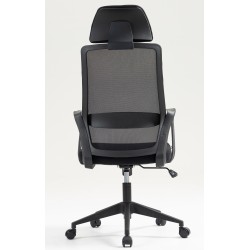 -Respaldo tapizado en malla translúcida de color negro