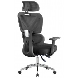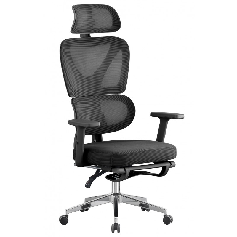 Sillón de oficina, alto, ergonómico, negro, malla negra.