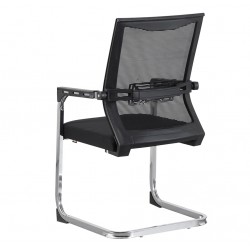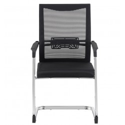 Sillón fijo de patín, diseño, cromado, tapizado malla negra.