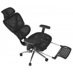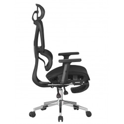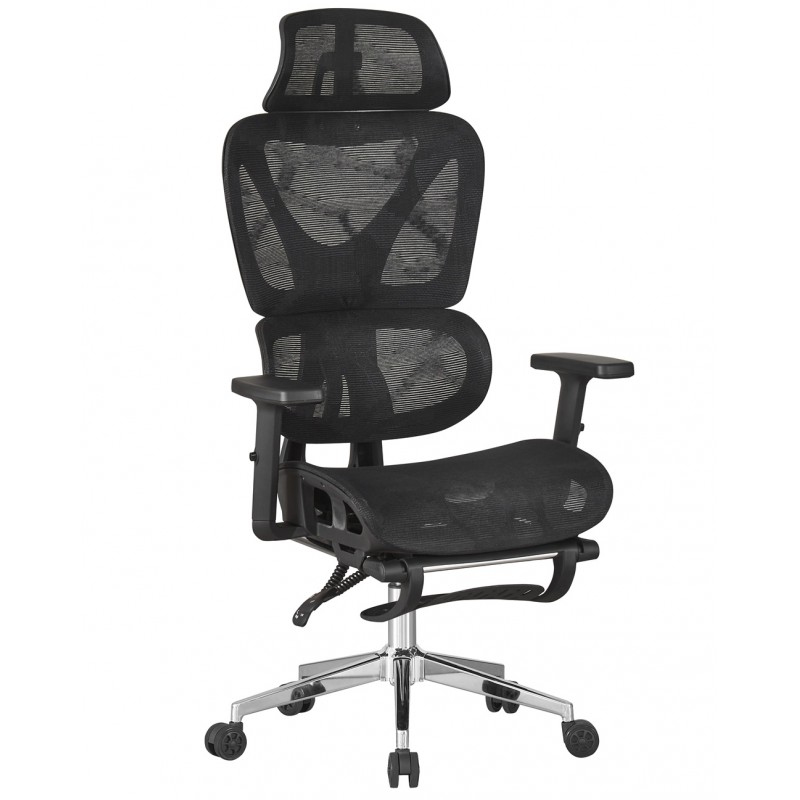 Sillón de oficina, alto, ergonómico, malla negra.