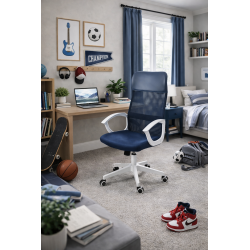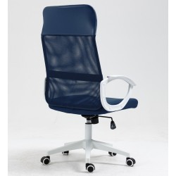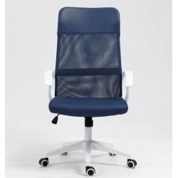 -Tapizado del respaldo en malla de color azul oscuro, cabezal en similpiel azul oscuro, asiento en tejido acrílico azul oscuro