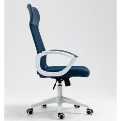 Sillón de oficina, blanco, regulación de altura, basculante, malla y asiento azul oscuro. Otros colores disponibles