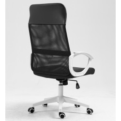 Sillón de oficina, blanco, regulación de altura, basculante, malla y asiento negro. Otros colores disponibles