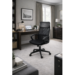 Sillón de oficina, negro, regulación de altura, basculante, malla y asiento negro. Otros colores disponibles