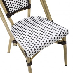 -Armazón de tubo de aluminio de 1,5 mm de espesor, muy reforzada, acabado bambú, ratán sintético de colores blanco y marrón combinados - tal cual imagen -