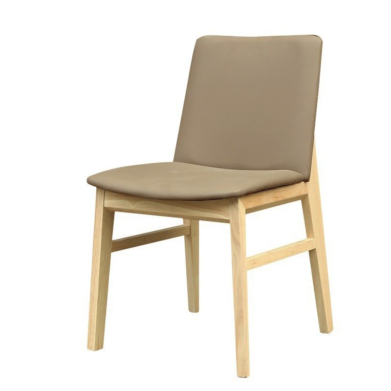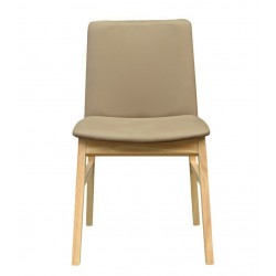 Silla de diseño, multiusos, madera de haya, barnizada natural, asiento y respaldo tapizado similpiel marrón