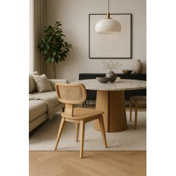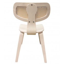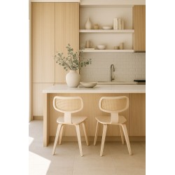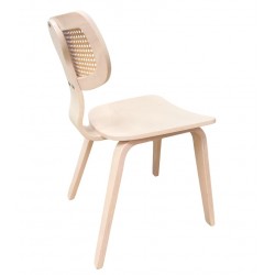Silla de diseño, multiusos, contrachapado de madera de hevea, rejilla, barnizado natural. Taburete a juego