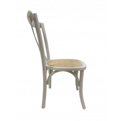 Silla de diseño, multiusos, madera de haya, barnizado blanco, asiento de ratán.