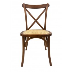 Silla de diseño, multiusos, madera de haya, barnizado nogal, asiento de ratán.