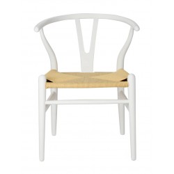 Silla de diseño, multiusos, madera de haya, lacada blanca, asiento de fibra trenzada.