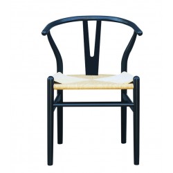 Silla de diseño, multiusos, madera de haya, lacado negro, asiento de fibra trenzada.