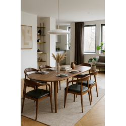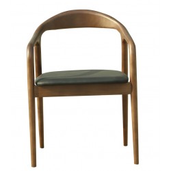 Sillón de diseño, multiusos, madera de haya, barnizado nogal, asiento tapizado similpiel negro