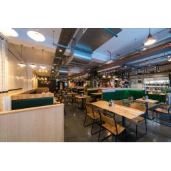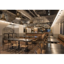 Silla multiusos, apilable, negra, contrachapado abedul, acabado barnizado natural. Taburete a juego.