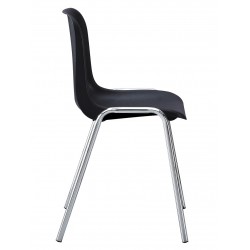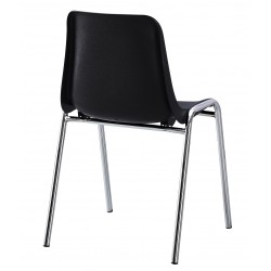 Silla apilable con asiento monoblock de polipropileno negro. Armazón tubular cromado. Otros colores disponibles
