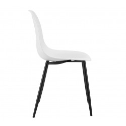 Silla de diseño, base de metal con acabado negro, asiento y respaldo de polipropileno inyectado de color blanco. Otros colores disponibles. Taburete a juego