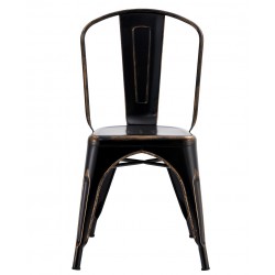 Silla de diseño, estructura de acero, pintada en negro con acabado vintage. Uso en interiores o exteriores. Otros acabados y colores disponibles. Mesa, sillón y taburete a juego.