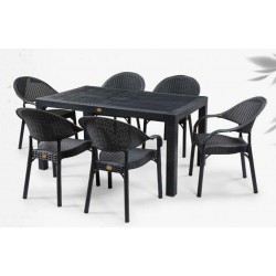 Sillón apilable, imitación a rattán, polipropileno antracita. Uso en exterior e interior. Otros colores disponibles.