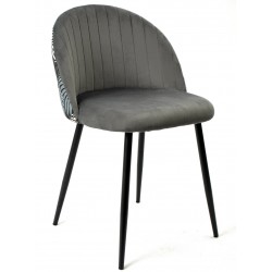 Silla de diseño, armazón metálico con acabado epoxi negro, asiento y respaldo tapizados en terciopelo gris, trasera en tejido decorado floral a juego. Otros colores disponibles. Taburete a juego
