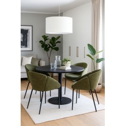 -Patas metálicas cónicas con acabado en pintura epoxi de color negro.