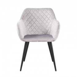 Sillón de diseño, armazón metálico con acabado epoxi negro, asiento y respaldo tapizados en velvet 13 gris claro. Otros colores disponibles.