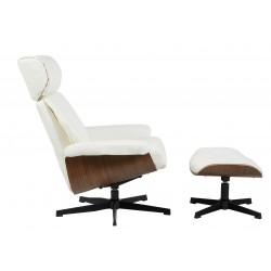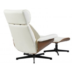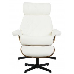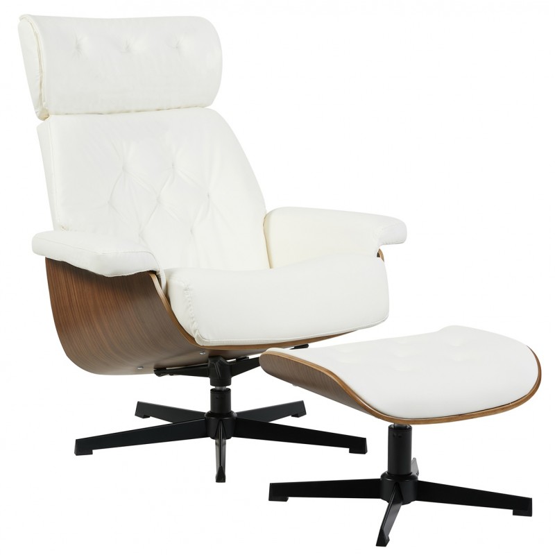 Butaca y ottoman, diseño, carcasa de madera contrachapada, tapizado en similpiel blanca. Otros colores disponibles.
