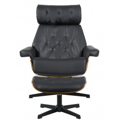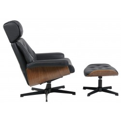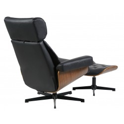 Butaca y ottoman, diseño, carcasa de madera contrachapada, tapizado en similpiel negra. Otros colores disponibles.